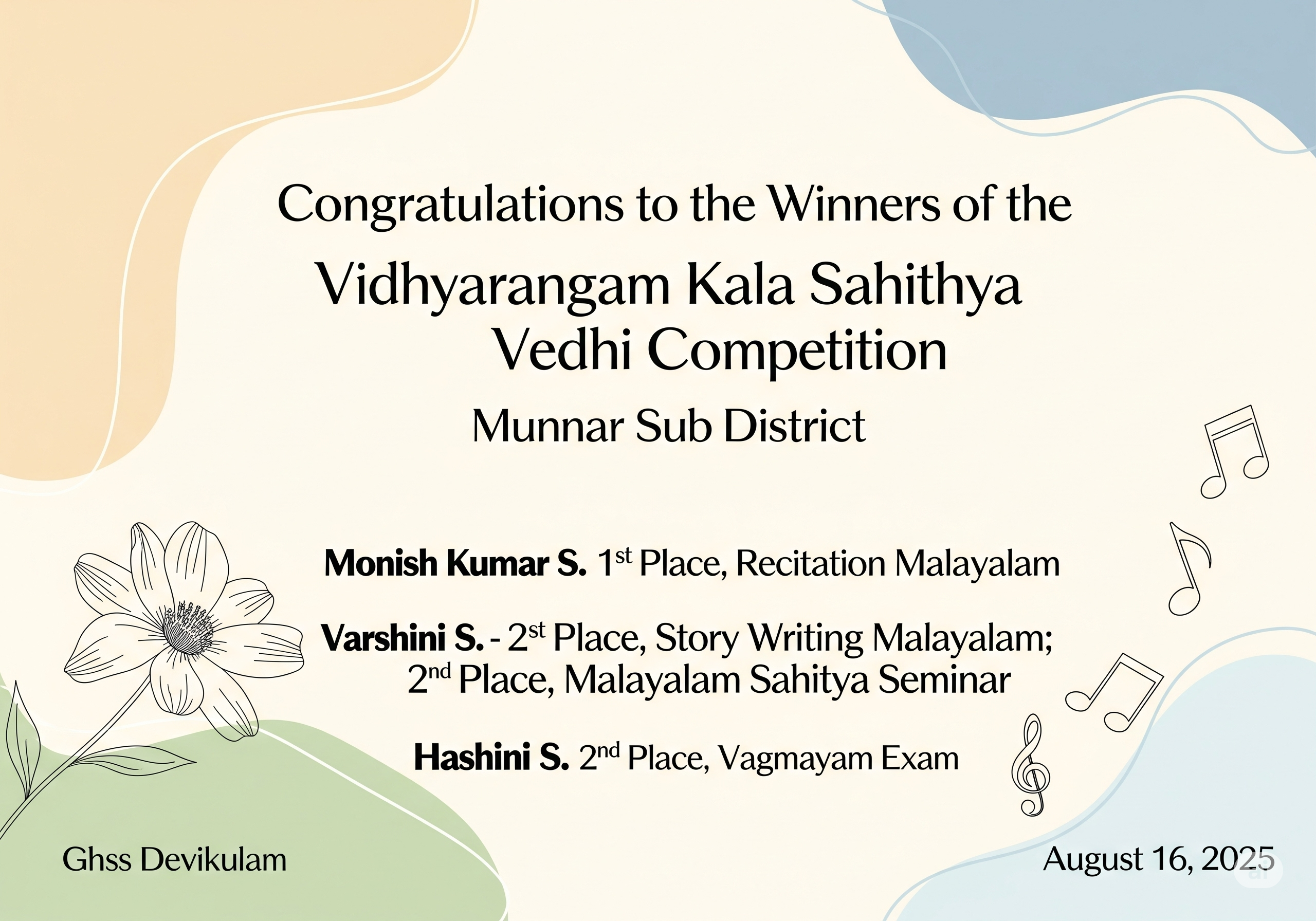 | 11:06, 17 ഓഗസ്റ്റ് 2025 | Vidhyarangam2025.png (പ്രമാണം) | 3.08 എം.ബി. | Winners of vidhyarangam Kalasahithya Vedhi competition Venue:- LFHS Munnar Date:- August 16,2025 | അതെ | |