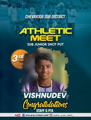 | 18:54, 23 നവംബർ 2025 | 17471-school-sports1.jpg (പ്രമാണം) | 207 കെ.ബി. | Vishnu Dev, a talented 7th-grade student of Janatha A U P School, has made his school proud by securing third place in the Sub-Junior Shot Put event at the Chevayur Athletic Meet. Displaying strength, determination, and excellent technique, Vishnu impressed everyone with his outstanding performance on the field. His achievement reflects his hard work and passion for athletics, and it stands as an inspiration to his peers and the entire school community. Congratulations to Vishnu on this remar... | അതെ | |