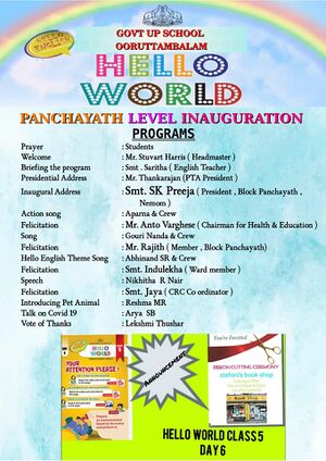 - സ്കൂളിലെ ഏഴാം ക്ലാസ് വിദ്യാർഥിനിയായ കുമാരി ലക്ഷ്മി തുഷാർ എല്ലാവർക്കും നന്ദി അറിയിച്ചു.
