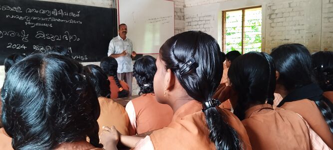താമരക്കുളം വി.വി.എച്ച്.എസ്.എസ് ഫോറസ്ട്രി ക്ലബിന്റെ നേതൃത്വത്തിൽ ബോധവത്കരണ ക്ലാസ് ഫോറസ്റ്റ് ഓഫീസർ രാജേഷ് സർ നയിക്കുന്നു.