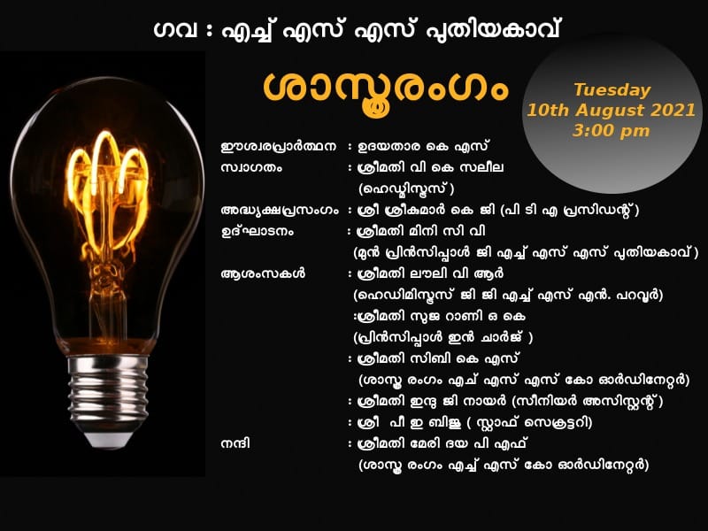 | 19:11, 6 ഫെബ്രുവരി 2022 | 25059 ekm shasthra rangam poster.jpg (പ്രമാണം) | 61 കെ.ബി. | 1 | ||