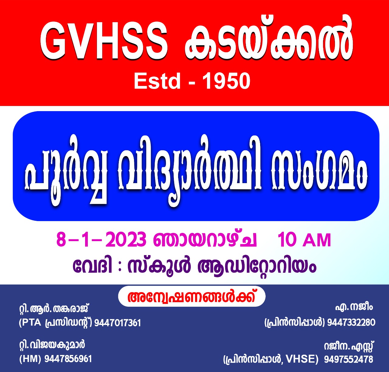 | 21:55, 10 ഫെബ്രുവരി 2023 | Poorvavidhyarthi.jpg (പ്രമാണം) | 128 കെ.ബി. | 1 | ||