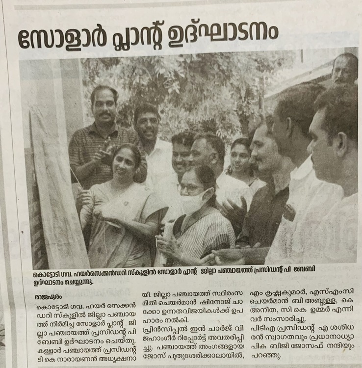 | 10:59, 8 ജൂലൈ 2022 | INAGURATION OF SOLAR PLANT.jpeg (പ്രമാണം) | 87 കെ.ബി. | ജില്ലാ പഞ്ചായത് നിർമിച്ച സോളാർ പ്ലാന്റ് ഉത്ഘാടനം ജില്ലാ പഞ്ചായത് പ്രസിഡന്റ് ശ്രീമതി പി . ബേബി ബാലകൃഷ്ണൻ നിർവഹിക്കുന്നു | 1 | |