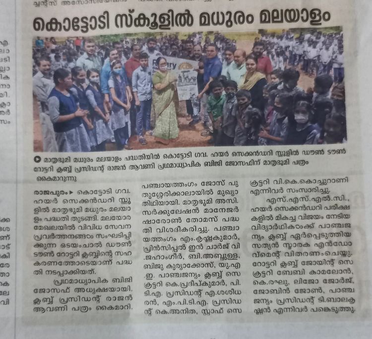 | 12:20, 26 ജൂലൈ 2022 | മധുരം മലയാളം 2022 jpg.jpeg (പ്രമാണം) | 46 കെ.ബി. | മധുരം മലയാളം(2022 ) പദ്ധതിയുടെ ഭാഗമായി ഒടയംചാൽ ഡൌൺ ടൌൺ റോട്ടറി ക്ലബ് മാതൃഭൂമി പത്രം നൽകി | 1 | |