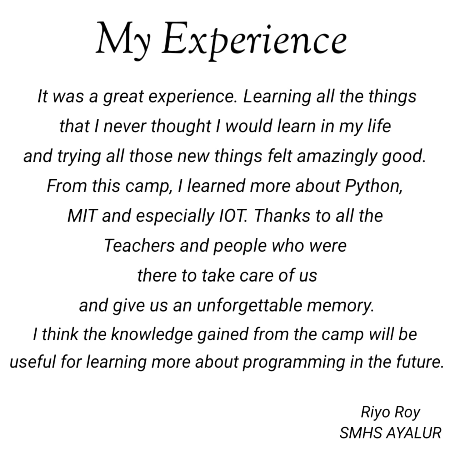 | 06:34, 1 മാർച്ച് 2024 | Lkdc2024-pkd-feeddback-p21.jpg (പ്രമാണം) | 556 കെ.ബി. | പാലക്കാട് ലിറ്റിൽ കൈറ്റ്സ് ജില്ലാ ക്യാമ്പ് 2024-അനുഭവക്കുറിപ്പുകൾ വർഗ്ഗം:LKDC2024 | 1 | |