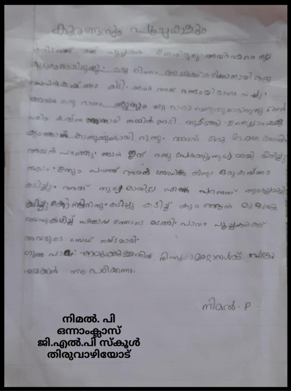 വർഗ്ഗം:ഒന്നാം ക്ലാസ്സുകാരുടെ രചനകൾ
