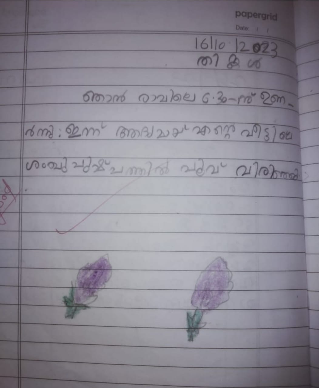 | 13:30, 6 മാർച്ച് 2024 | 41217-KLM-KUNJ-AmnaFathima.jpeg (പ്രമാണം) | 52 കെ.ബി. | kunjezhuthukal of class 1 student വർഗ്ഗം:ഒന്നാം ക്ലാസ്സുകാരുടെ രചനകൾ | 1 | |