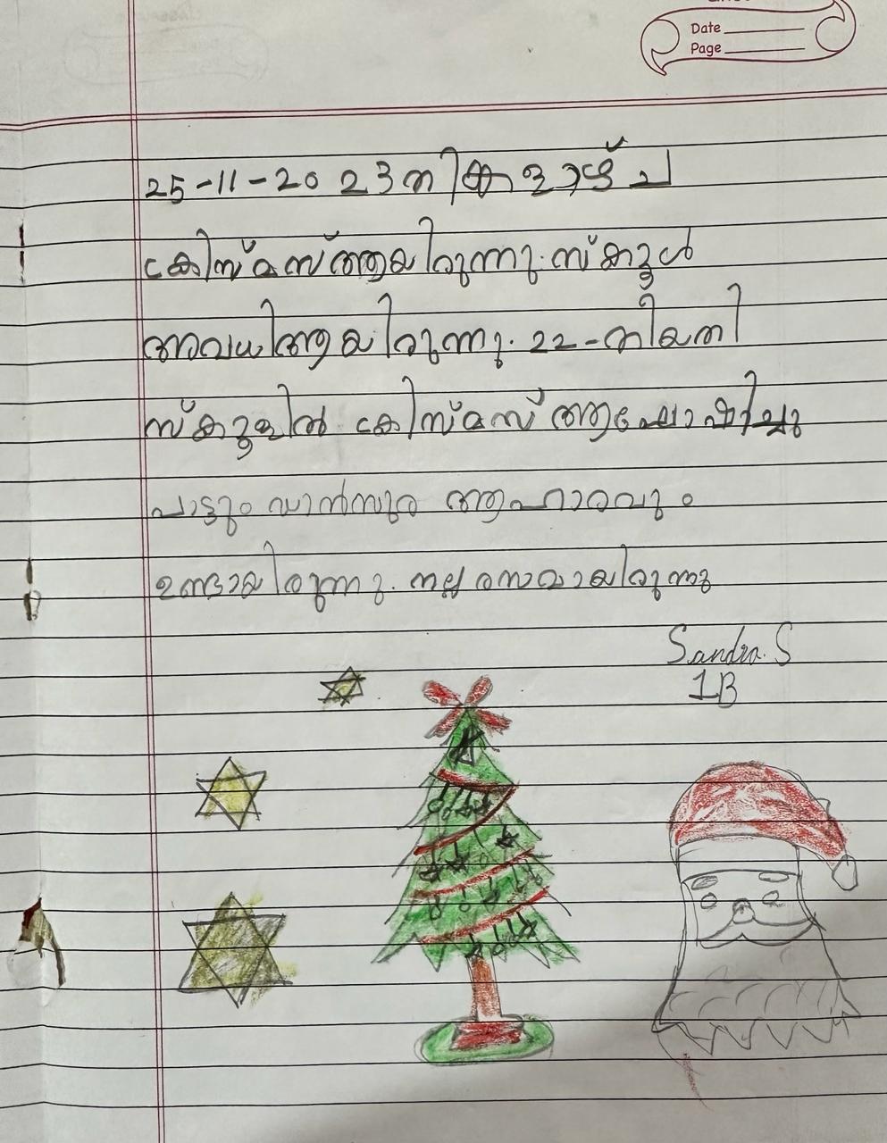 | 13:38, 6 മാർച്ച് 2024 | 39341-KLM-KUNJ-NASARIYA.jpeg (പ്രമാണം) | 150 കെ.ബി. | kunjezhuth of class 1 student വർഗ്ഗം:ഒന്നാം ക്ലാസ്സുകാരുടെ രചനകൾ | 1 | |