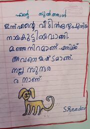 | 17:26, 6 മാർച്ച് 2024 | 39336-KLM-KUN-Sivanya Sreejith.jpg (പ്രമാണം) | 169 കെ.ബി. | kunjezhuth of class 1 student വർഗ്ഗം:ഒന്നാം ക്ലാസ്സുകാരുടെ രചനകൾ | 1 | |