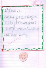 | 14:23, 6 മാർച്ച് 2024 | 39313-KLM-KUNJ-shravya.jpeg (പ്രമാണം) | 150 കെ.ബി. | kunjezhuth of class 1 student വർഗ്ഗം:ഒന്നാം ക്ലാസ്സുകാരുടെ രചനകൾ | 1 | |