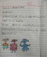 | 16:33, 11 മാർച്ച് 2024 | 30516-IDK-KUNJ-02.jpeg (പ്രമാണം) | 21 കെ.ബി. | Kunjezhuthukal of class 1 student വർഗ്ഗം:ഒന്നാം ക്ലാസ്സുകാരുടെ രചനകൾ | 1 | |