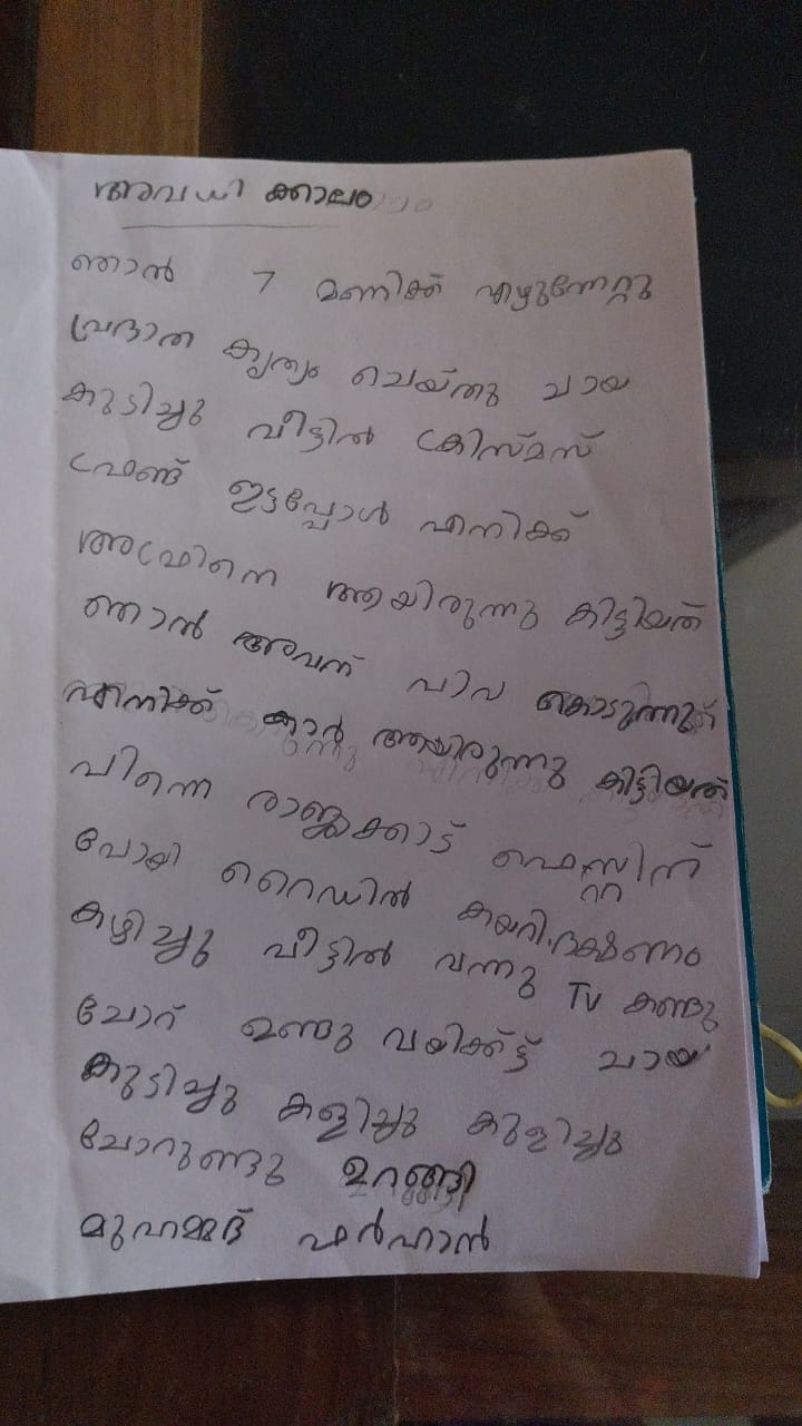 | 14:22, 12 മാർച്ച് 2024 | 30329-IDK-KUNJ-MIDHUNA.jpeg (പ്രമാണം) | 155 കെ.ബി. | Kunjezhuthukal for class 1 student 30329 വർഗ്ഗം:ഒന്നാം ക്ലാസ്സുകാരുടെ രചനകൾ | 1 | |