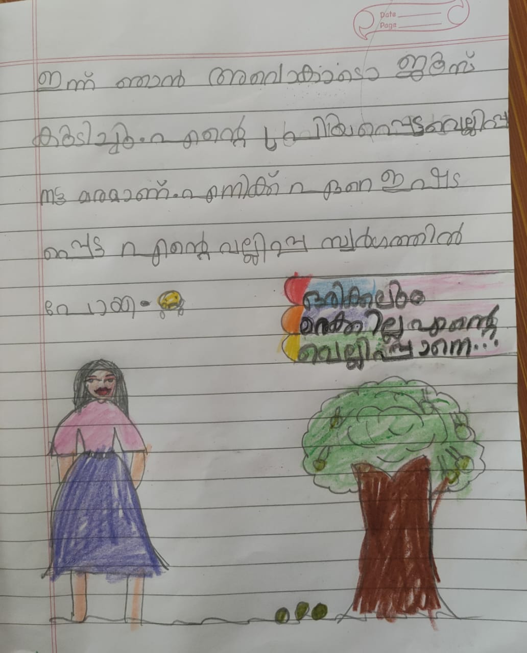 ഒന്നാം ക്ലാസ്സിലെ കുഞ്ഞെഴുത്ത്
