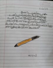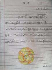 | 19:51, 6 മാർച്ച് 2024 | 41244-KLM-KUNJ-Nithusha.jpeg (പ്രമാണം) | 51 കെ.ബി. | kunjezhuthukal of class 1 student വർഗ്ഗം:ഒന്നാം ക്ലാസ്സുകാരുടെ രചനകൾ | 1 | |