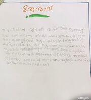 | 21:04, 14 മാർച്ച് 2024 | 41211-KLM-KUNJ-SamanyaS.jpeg (പ്രമാണം) | 88 കെ.ബി. | Kunjezhuthukal of class 1 student വർഗ്ഗം:ഒന്നാം ക്ലാസ്സുകാരുടെ രചനകൾ | 1 | |