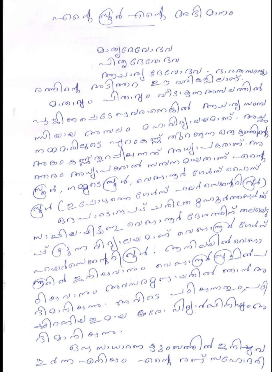 | 22:41, 21 നവംബർ 2023 | Fredom fest message.jpg (പ്രമാണം) | 180 കെ.ബി. | നവ സാങ്കേതിക വിദ്യയുടെയും സ്വതന്ത്ര അറിവുകളുടെയും വേദിയൊരുക്കുന്ന ഫ്രീഡം ഫെസ്റ്റ് നമ്മുടെ സ്കൂളിലും മികവുറ്റ പ്രവർത്തനങ്ങളിൽ ഒന്നായി മാറി. ഓഗസ്റ്റ് പതിനൊന്നാം തീയതി പ്രത്യേക അസംബ്ലി കൂടുകയും 2022:2025 ബാച്ചിലെ ലിറ്റിൽ കൈറ്റ്സ് ലെ അംഗമായ സ്വാതി എസ് ലാൽ ഫ്രീഡം ഫെസ്റ്റ് ന്റെ സന്ദേശംഅവതരിപ്പിക്കുകയും ചെയ്തു. ഈ സന്ദേശം വിദ്യാർഥികളിൽ എത്തിക്കുന്ന തരത്തിൽ ഓഗസ്റ്റ് പതിനൊന്നിന് ഡിജിറ്റൽ പോസ്റ്റർ നിർമ്മാണ മത്സരങ്ങൾ നടത്തുകയും കുട്ടികൾ സജീവമായി പങ്കെടുക്കുകയും ചെയ്തു. | 1 | |