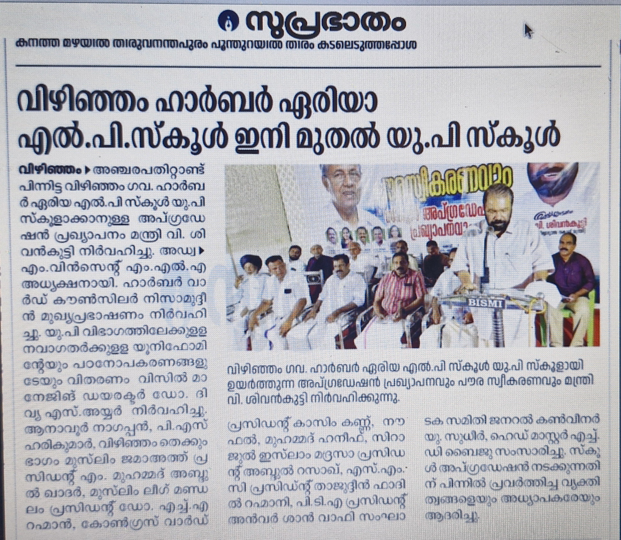 | 17:42, 3 ജൂൺ 2025 | 44223 up news supra.jpg (പ്രമാണം) | 1.7 എം.ബി. | വിഴിഞ്ഞം ഹാർബർ ഏരിയ എൽ.പി. സ്കൂൾ അപ്ഗ്രേഡ് ചെയ്ത് യു.പി. സ്കൂളായ പത്രവാർത്ത വിവിധ പത്രങ്ങളിൽ വർഗ്ഗം:44223 | 1 | |