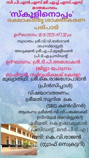 വിദ്യാരംഗം കലാസാഹിത്യവേദിയുടെ ആഭിമുഖ്യത്തിൽ അനുസ്മരണ ചടങ്ങ് നടത്തി ,വയലാർ ഗാനോത്സവം കേരളപ്പിറവി അസംബ്ലി ,പ്രതിജ്ഞ ,പ്രഭാഷണം കേരളഗാനം കേൾപ്പിക്കൽ ,എന്നിങ്ങനെ വിവിധ പരിപാടികൾ നടന്നു