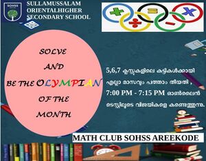 ഗണിത ക്ലബ്ബിൻ്റെ നേതൃത്വത്തിൽ എല്ലാ മാസവും പത്താം തിയ്യതി olympian of the month നെ തിരഞ്ഞെടുക്കുന്നു. കുട്ടികൾ വളരെ ആവേശപൂർവ്വം പങ്കെടുക്കുന്ന ഈ പരിപാടി കുട്ടികളിൽ ഗണിത താത്പര്യം ഉണ്ടാക്കാൻ ഉപകരിക്കുന്നു.