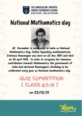 ദേശീയ ഗണിത ശാസ്ത്ര ദിനത്തോടനുബന്ധിച്ച് ഗണിത ക്വിസ് മത്സരം സംഘടിപ്പിച്ചു.