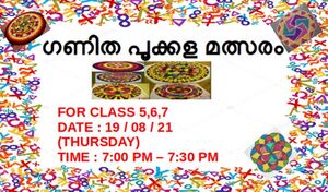 ഗണിത ക്ലബ്ബിൻ്റെ നേതൃത്വത്തിൽ ഗണിത പൂക്കള മത്സരം നടത്തി. വിജയികൾക്ക് സമ്മാനം വിതരണം ചെയ്തു.