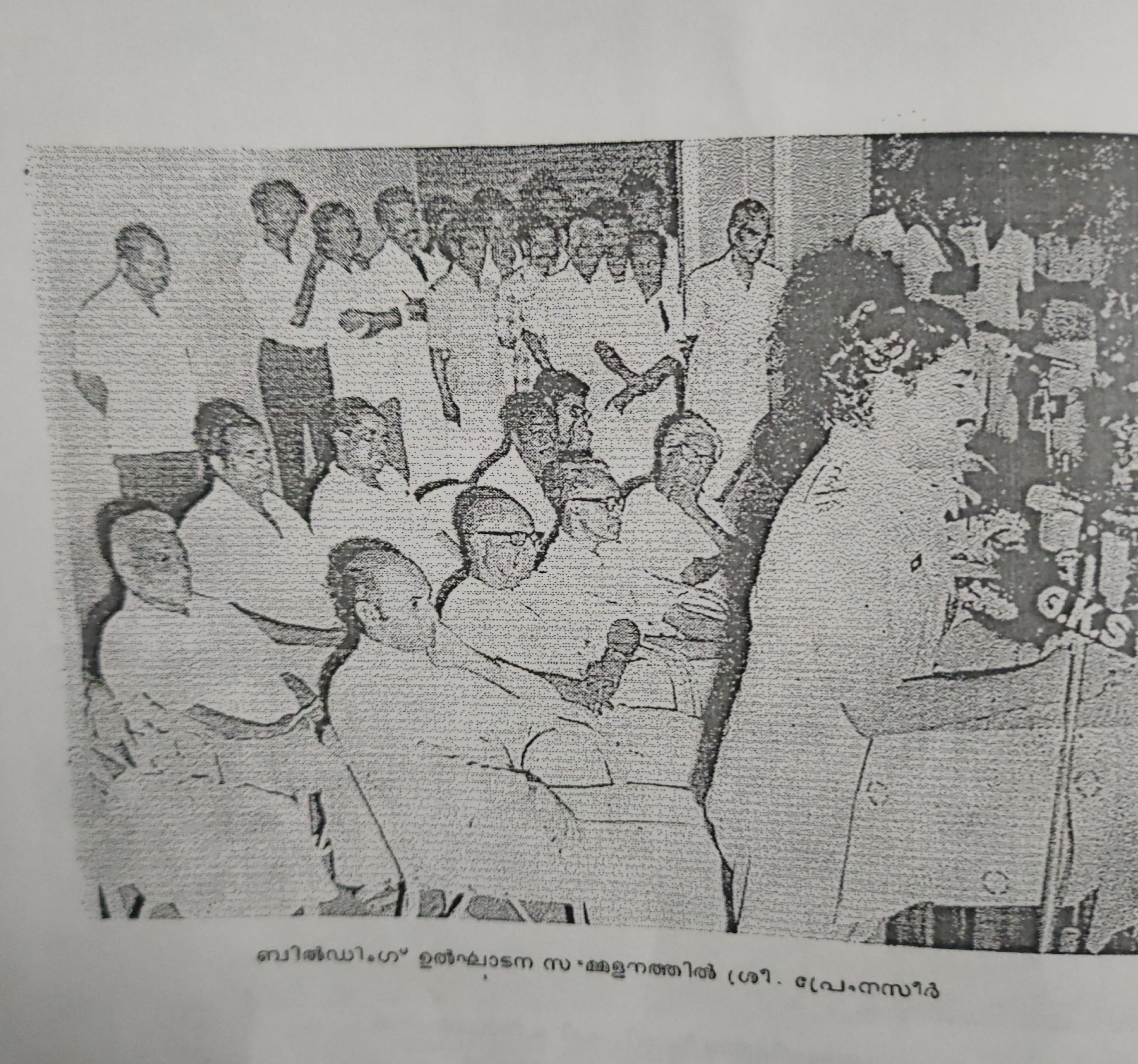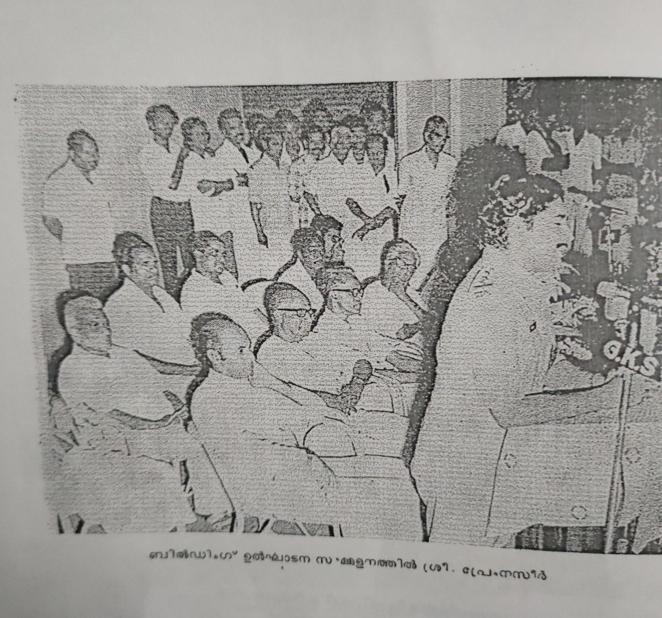 ബിൽഡിംഗ് ഉദ്ഘാടന സമ്മേളനത്തിൽ പ്രമുഖ സിനിമാതാരം പ്രേം നസീർ സംസാരിക്കുന്നു