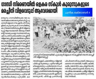 വിദ്യാഭ്യാസം വേലയിൽ വിളയുന്നു എന്ന രീതിയിൽ ഒളകര സ്കൂളിൽ വിളവെടുത്തത് ഒരു ക്വിന്റൽ കപ്പ. ഗാന്ധിജയന്തി ദിനാഘോഷത്തിൽ ഗാന്ധിജിയുടെ സ്വാശ്രയ ശീല സന്ദേശമുയർത്തി സ്കൂൾ കാർഷിക ക്ലബ്ബിന് കീഴിൽ സ്വന്തമായി കൃഷി ചെയ്ത കപ്പ വിളവെടുത്തു. സ്കൂളിൽ കപ്പ കൃഷിക്കു പുറമേ ചേമ്പ്, ചേന, ചീര, മുരിങ്ങ എന്നിവയെല്ലാം കഷി ചെയ്തു വരുന്നു . മിക്കവാറും ദിവസങ്ങളിൽ സ്കൂളിലെ ഉച്ചയൂണിനുള്ള പച്ചക്കറി വിലകൊടുത്തു വാങ്ങാറില്ല. ഗാന്ധി ജയന്തിയോടനുബന്ധിച്ച് ശുചീകരണ പ്രവർത്തനങ്ങൾക്കെത്തിയ രക്ഷിതാക്കൾക്കും സ്കൂളിലെ പൂർവ വിദ്യാർഥികൾക്കും വിളമ്പിയത് മരച്ചീനി പുഴുങ്ങിയതും, കാന്താരിമുളക് ചമ്മന്തിയുമായിരുന്നു. പിടിഎയുടെയും പൂർവ വിദ്യാർഥികളുടെയും പൂർണമായ സഹകരണം ഈ വിദ്യാലയത്തിലെ എല്ലാ പ്രവർത്തനങ്ങൾക്കും ഉണ്ടാവാറുണ്ടെന്ന് പ്രധാനാധ്യാപകൻ എൻ വേലായുധൻ പറഞ്ഞു. പിടിഎ പ്രസിഡന്റ് പി.പി. സൈദ് മുഹമ്മദ് കൃഷിയിൽ തത്പരനാണ്. അധ്യാപകരായ സോമരാജ്, റഷീദ്, ഷാജി, കരീം, ജോസിന എന്നിവരുടെ മേൽനോട്ടവും കൃഷിയിലെ ഗാന്ധിയൻ ആദർശത്തെ ഫല പ്രാപ്തിയിലെത്തിക്കാൻ പര്യാപ്തമായി. കെ.പി ഉസ്മാൻ, സി.വി പ്രമോദ് കുമാർ, ബാവ, സുഷ, ജിഷ, ഷൈലജ, പ്രമീള എന്നിവർ വിളവെടുപ്പിലും പാചകത്തിലും പങ്കാളികളായി.