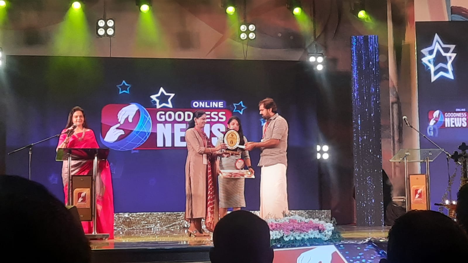 മലയാളം⧼Colon⧽ SMT. ELIZABETH RAJU (PLAYBACK SINGER) RECEIVING THE AWARD DURING THE AWARD CEREMONY CONDUCTED BY GOODNESS TELEVISION IN JULY 2022