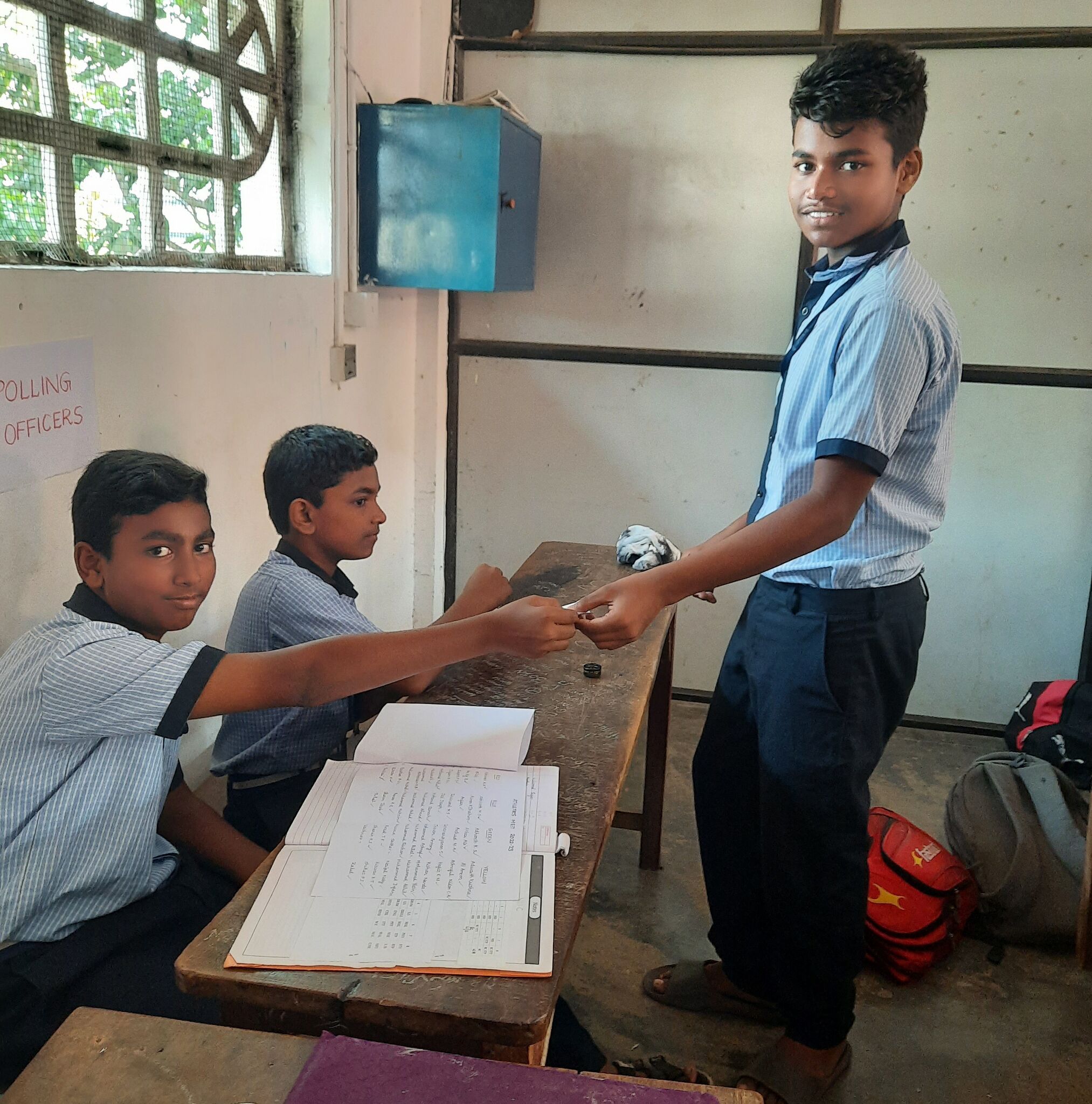 സ്കൂൾ പാർലമെന്റ് ഇലക്ഷന് വോട്ട് രേഖപ്പെടുത്തുന്നതിനുള്ള സ്ലിപ്പ് നൽകുന്ന വിദ്യാർത്ഥികൾ