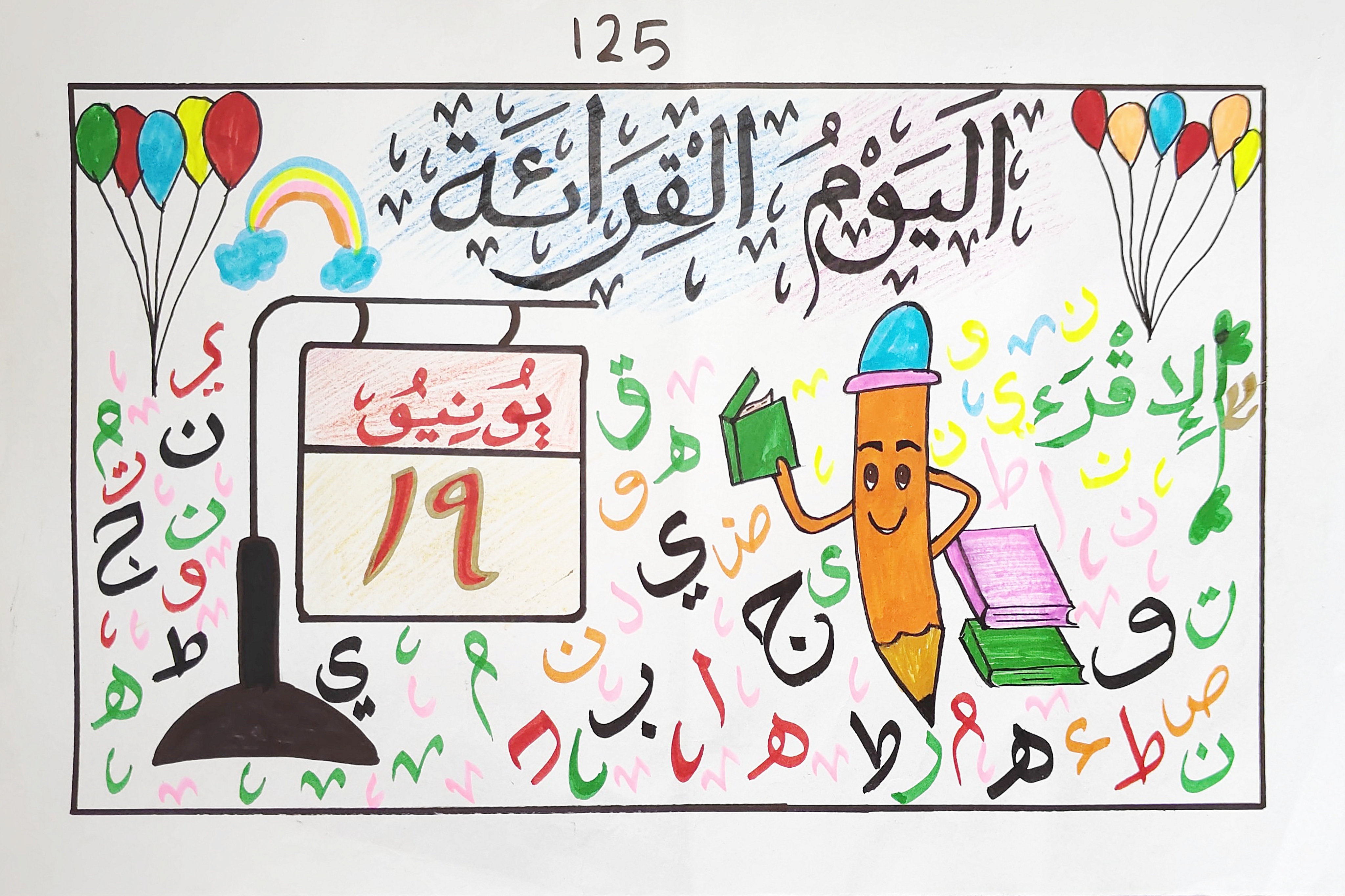 മലയാളം⧼Colon⧽ 62-ാമത് സ്കൂൾ കലോത്സവത്തിൽ എച്ച്എസ് അറബിക് വിഭാഗം അറബി പോസ്റ്റർ നിർമ്മാണം മത്സരത്തിലുള്ള രചനകൾ