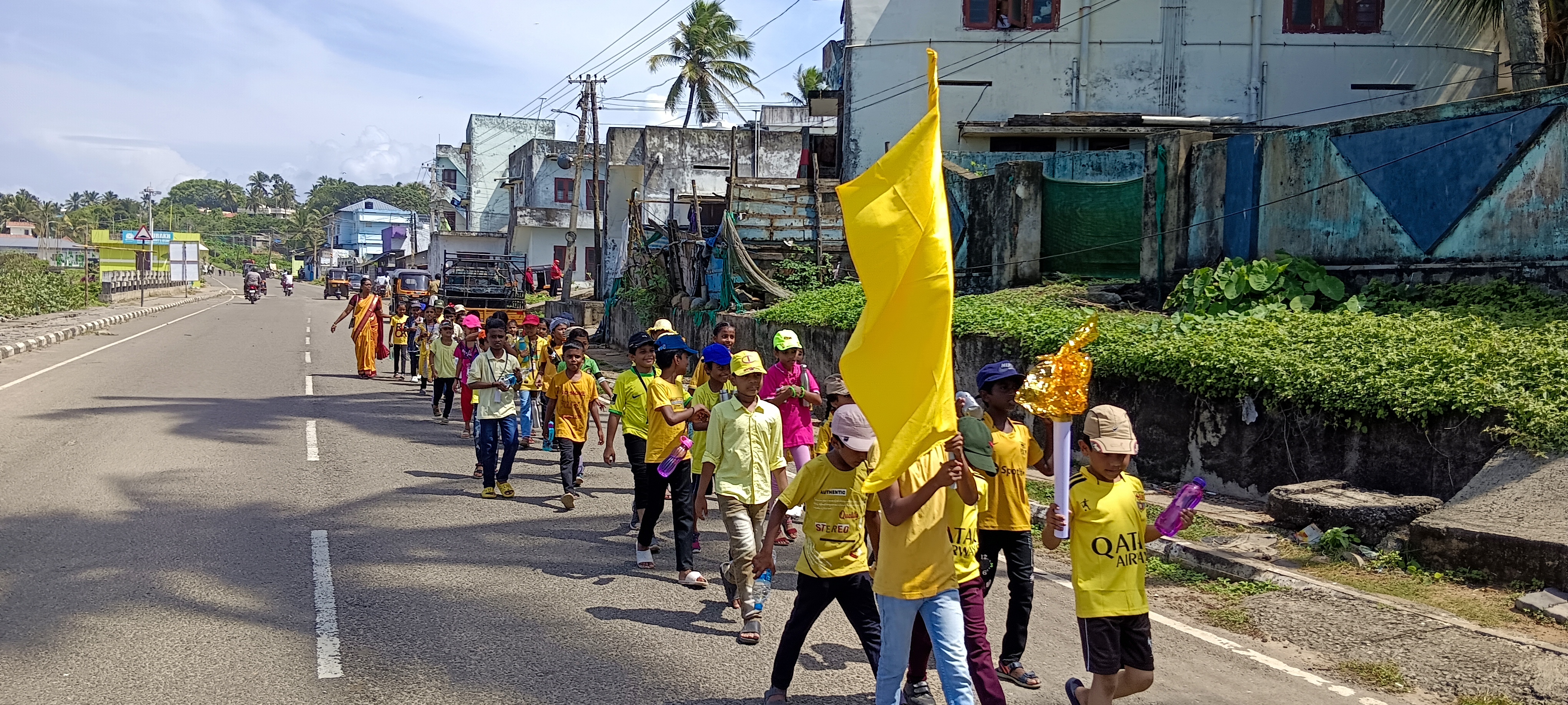വിഴിഞ്ഞം ഗവൺമെൻറ് ഹാർബർ സ്കൂളിൽ കായികമേള യോടനുബന്ധിച്ച് നടന്നിട്ടുള്ളൂ മാർച്ച് പാസ്റ്റിൽ വിവിധ ഹൗസുകളുടെ ടീം അംഗങ്ങൾ