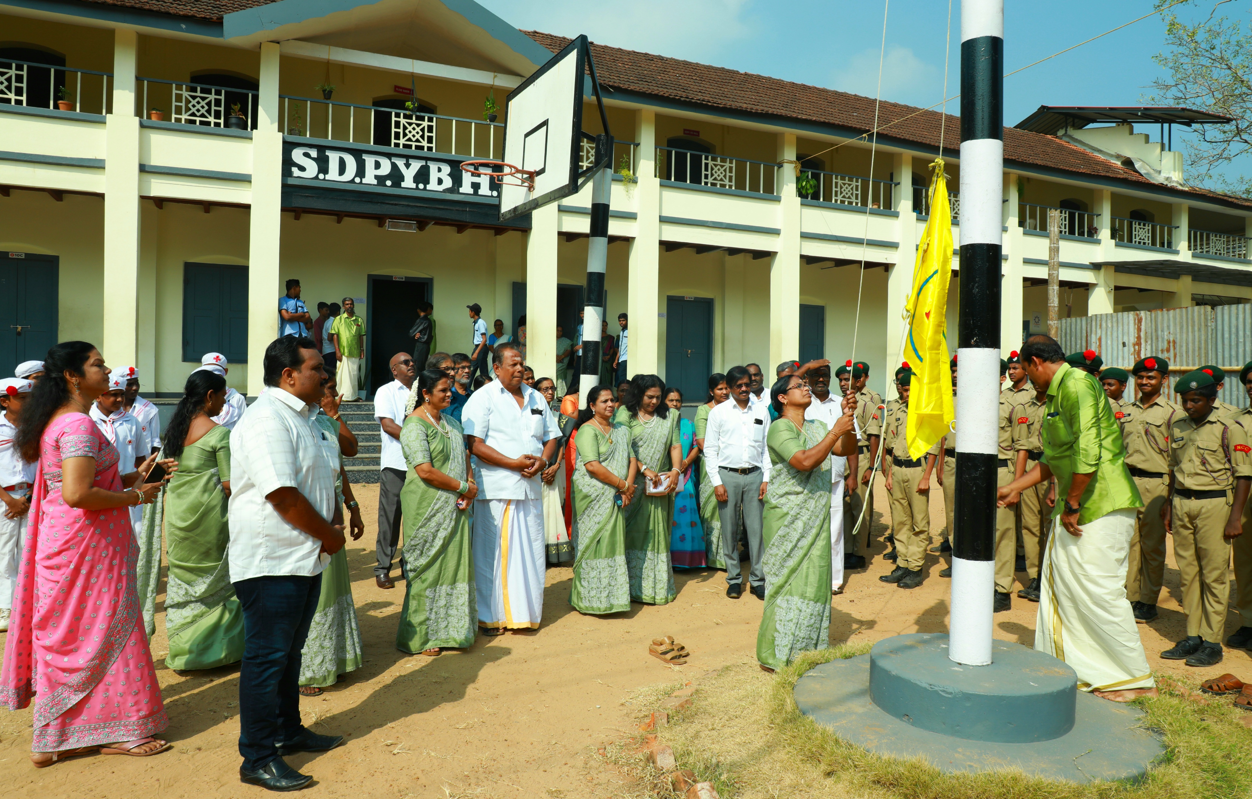 സ്കൂൾ വാർഷികദിനത്തോടനുബന്ധിച്ച് നടത്തിയ പതാക ഉയർത്തൽ