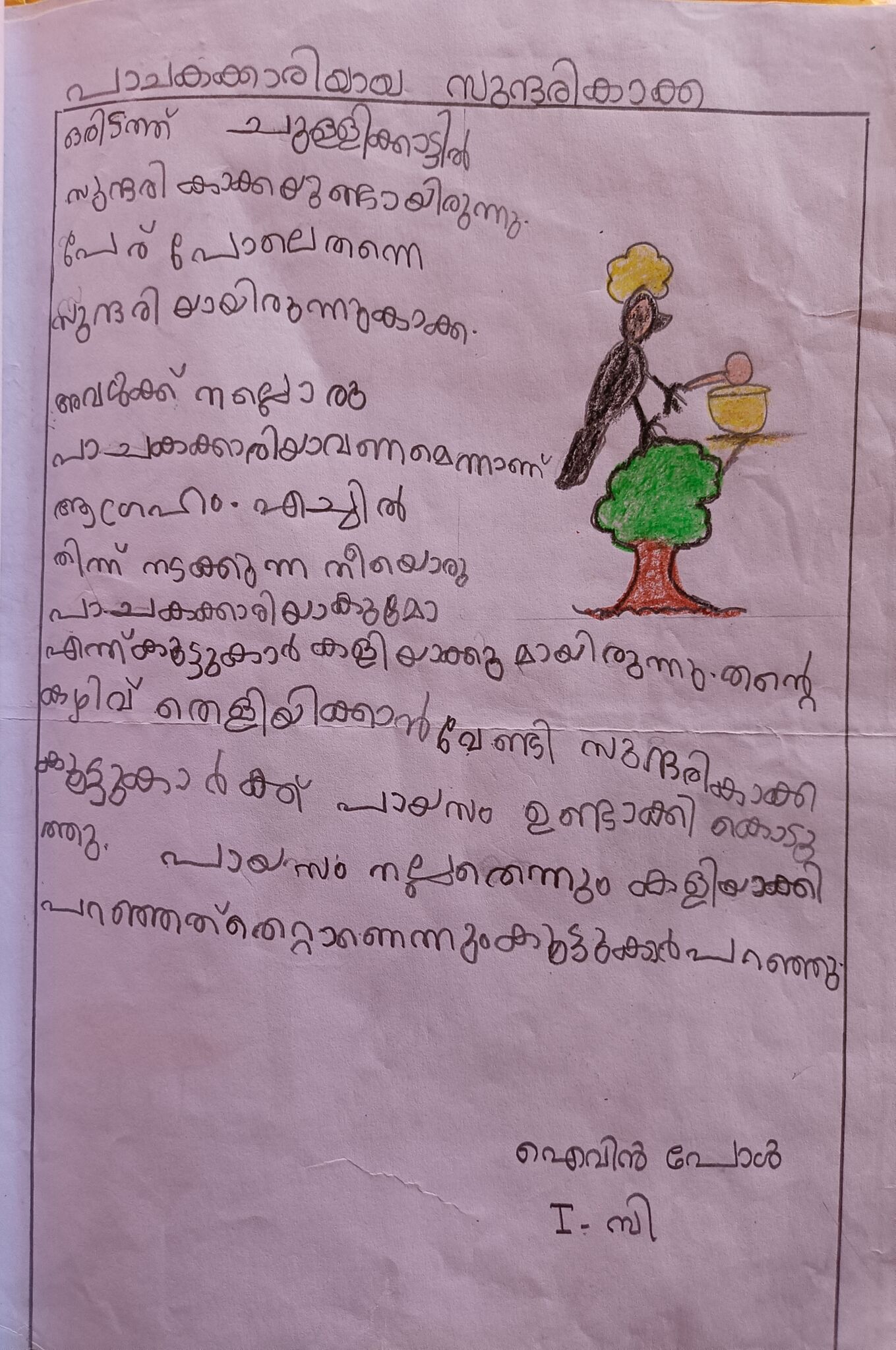 09:03, 27 ഫെബ്രുവരി 2024-നു ഉണ്ടായിരുന്ന രൂപം സൃഷ്ടിച്ചത്:- 13748 (സംവാദം | സംഭാവനകൾ) (kunjezhuthukal വർഗ്ഗം:ഒന്നാം ക്ലാസ്സുകാരുടെ രചനകൾ)