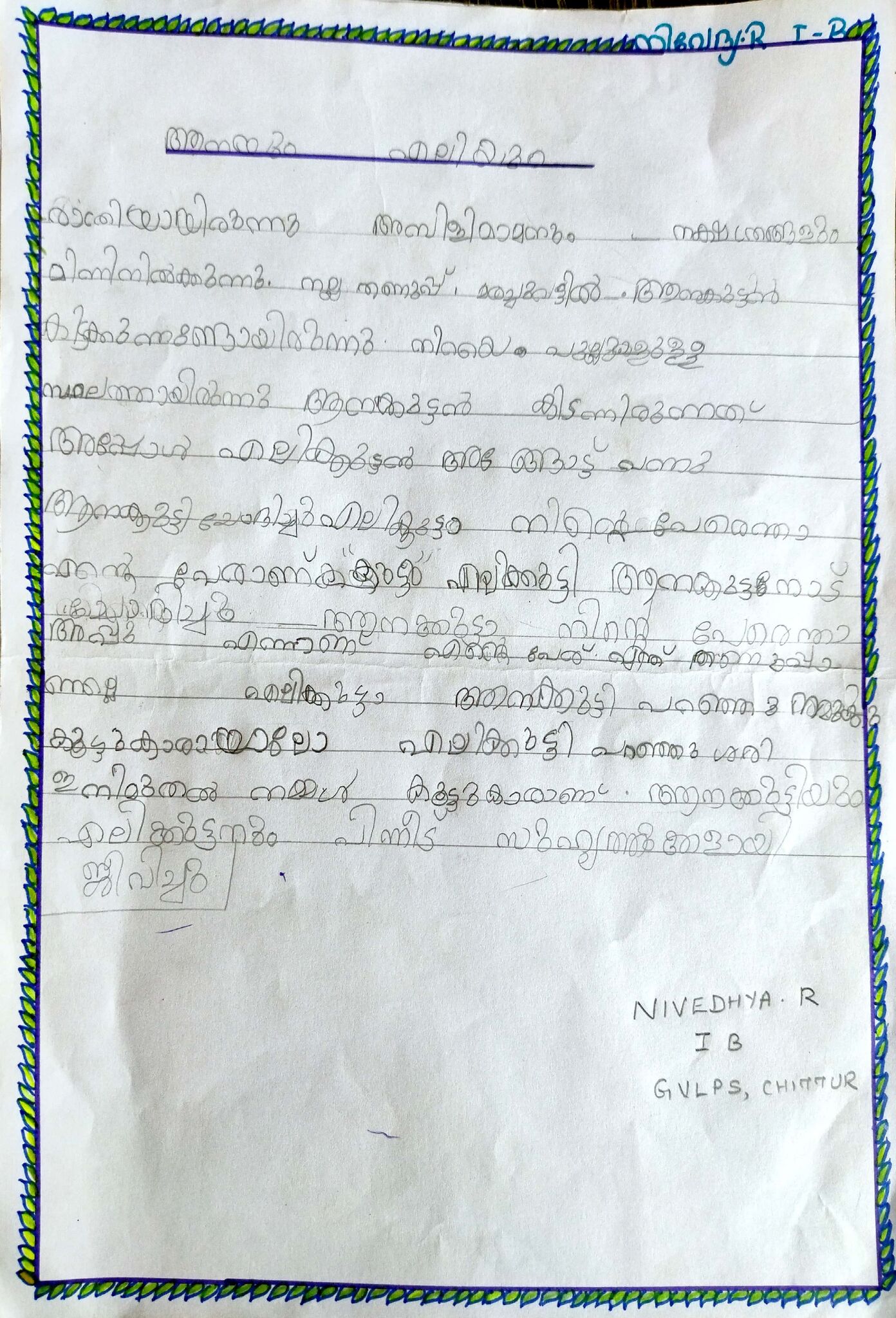kunjezhuth of class 1 student