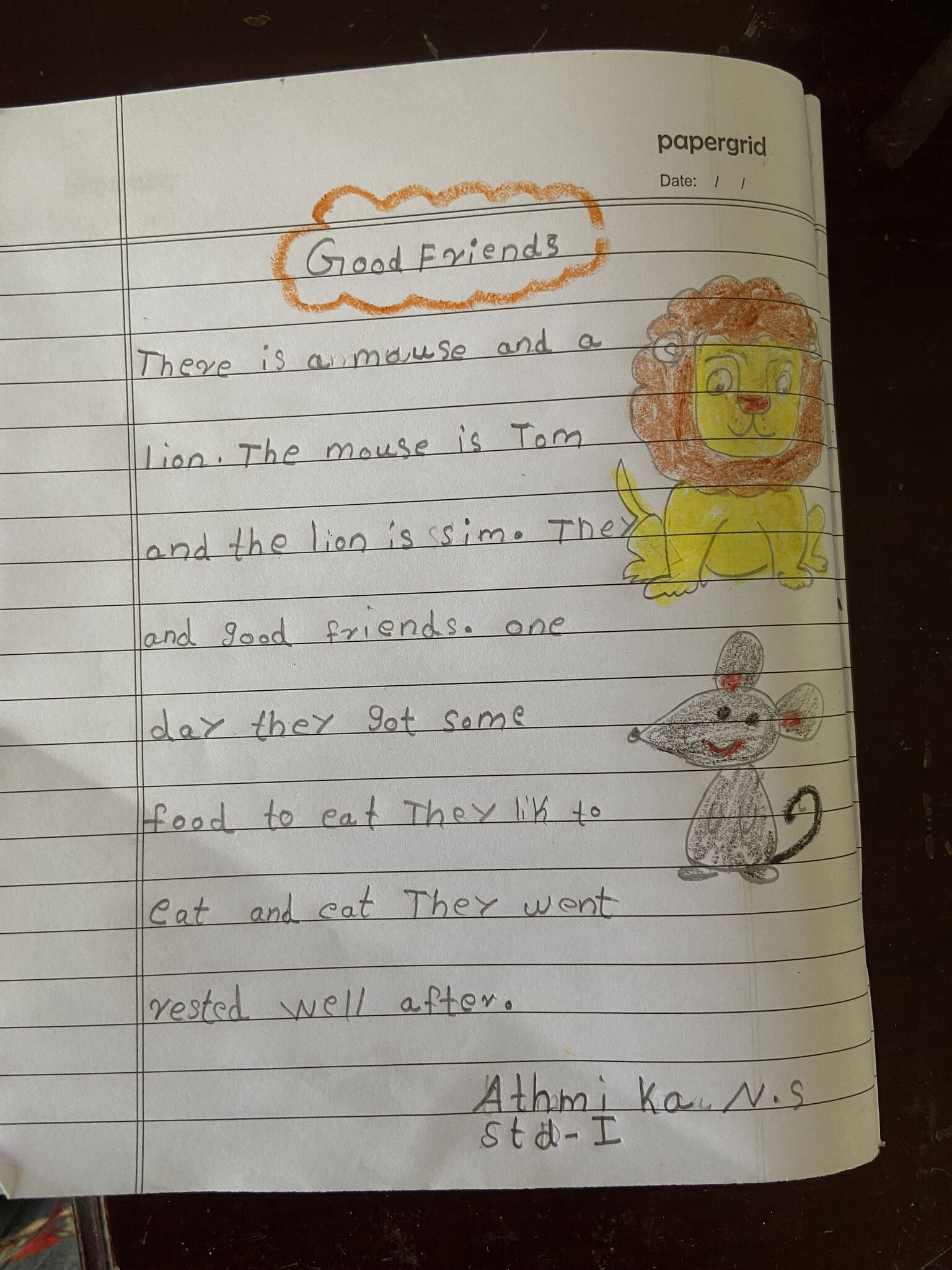 Kunjezhuth of std 1 student