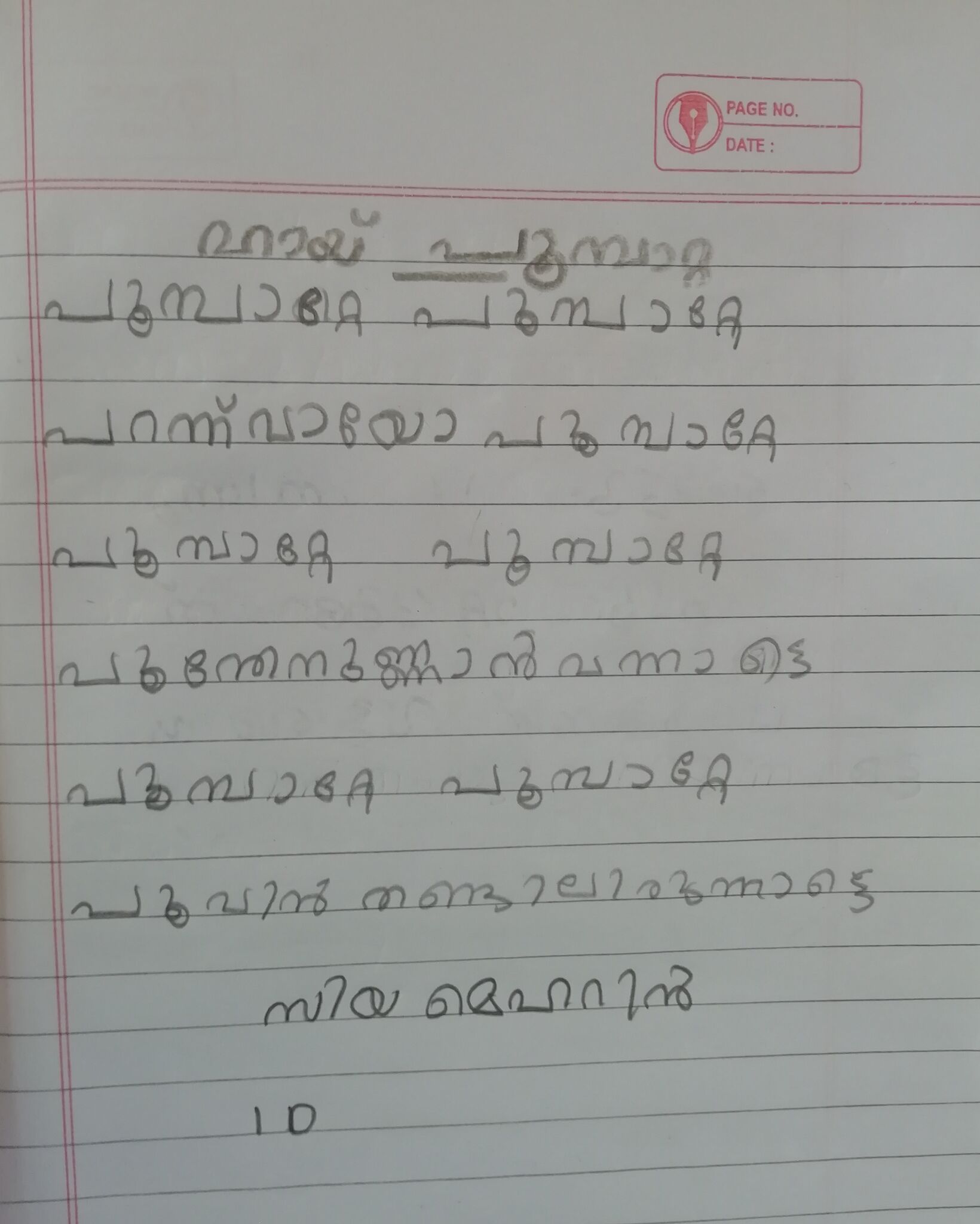 kunjezhuthu of class 1 student