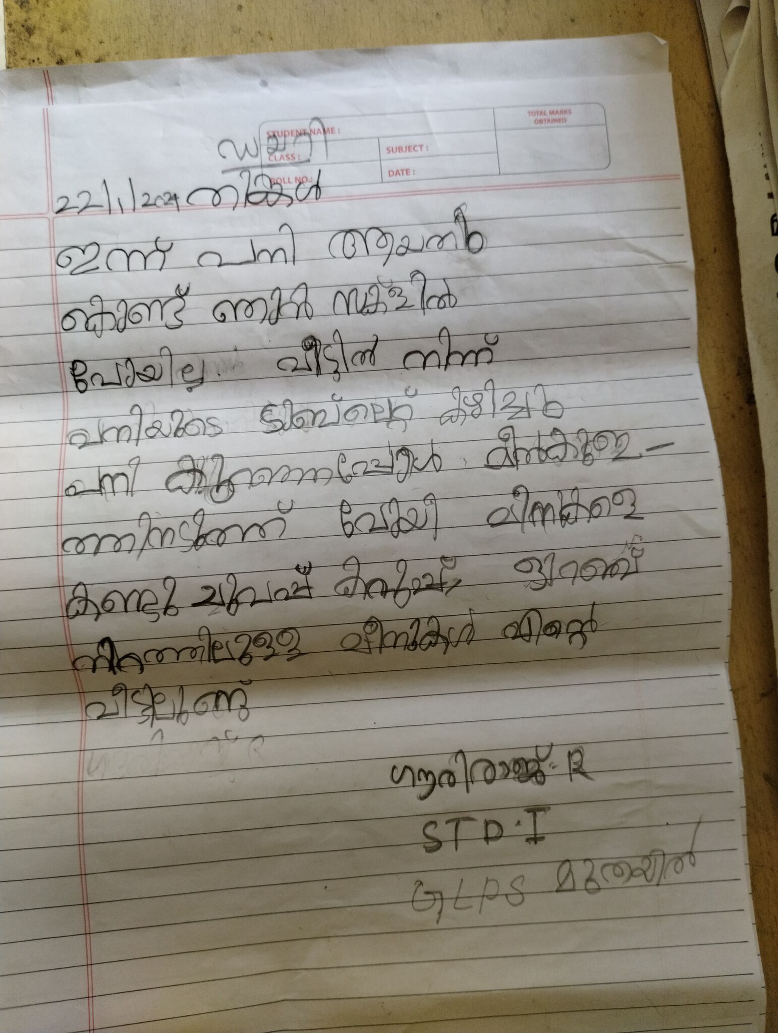 kunjezhuthu of class 1 student