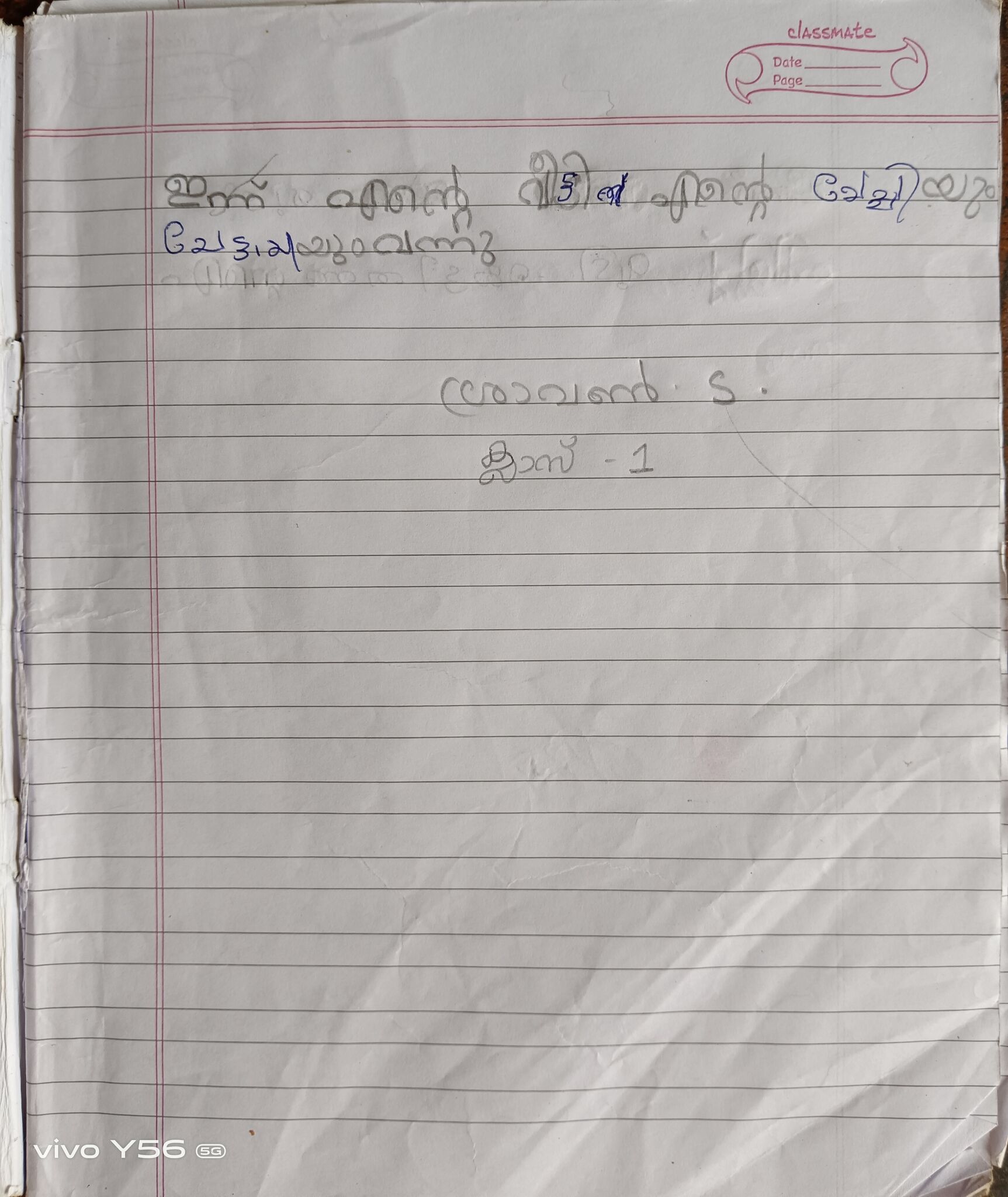 kunjezhuthu of class 1 student
