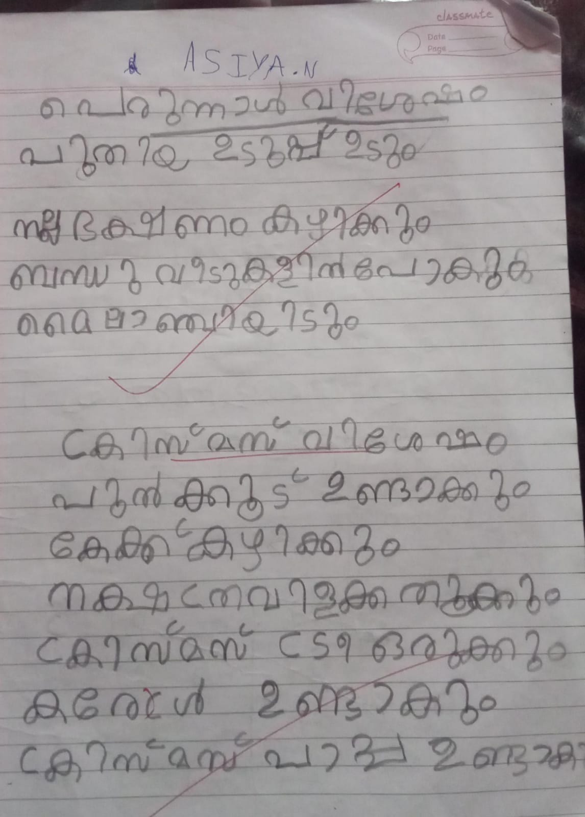 kunjezhuthu of class 1 student