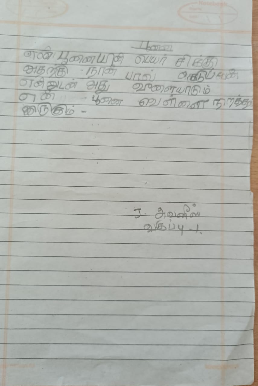 | നിലവിലുള്ളത് | 23:19, 7 മാർച്ച് 2024 | 855 × 1,280 (67 കെ.ബി.) | Bijeshkuriakose (സംവാദം | സംഭാവനകൾ) | Kunjezhuthukal of class 1 student വർഗ്ഗം:ഒന്നാം ക്ലാസ്സുകാരുടെ രചനകൾ |
