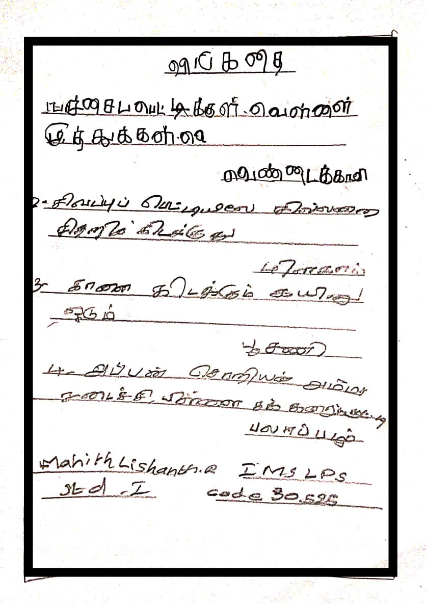| നിലവിലുള്ളത് | 07:29, 12 മാർച്ച് 2024 | 838 × 1,185 (101 കെ.ബി.) | Bijeshkuriakose (സംവാദം | സംഭാവനകൾ) | Kunjezhuthukal of class 1 student വർഗ്ഗം:ഒന്നാം ക്ലാസ്സുകാരുടെ രചനകൾ |