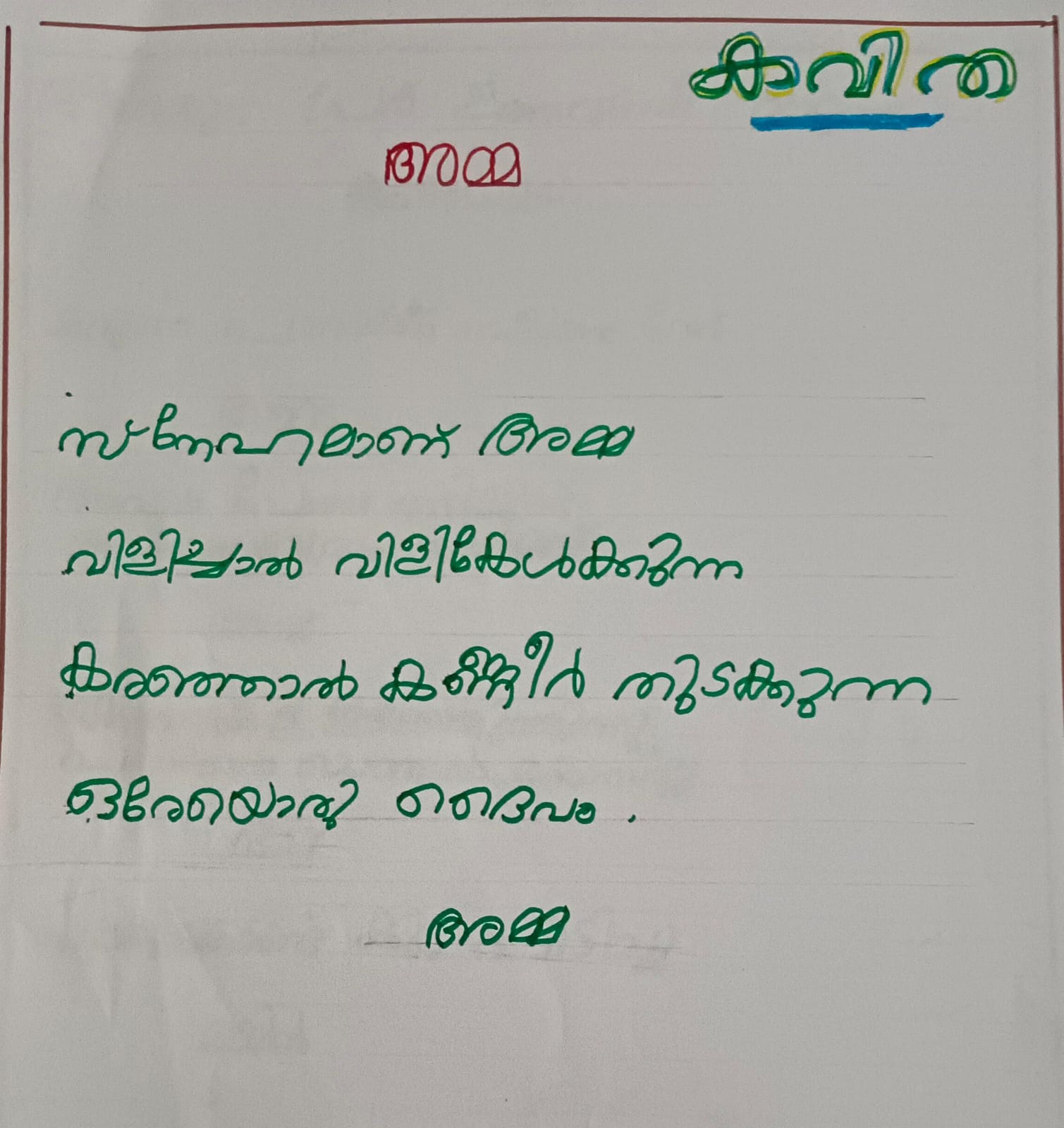 09:45, 17 മാർച്ച് 2024-നു ഉണ്ടായിരുന്ന രൂപം സൃഷ്ടിച്ചത്:- 26238 (സംവാദം | സംഭാവനകൾ) (KUNJEZHUTHU OF CLASS 1 STUDENT)