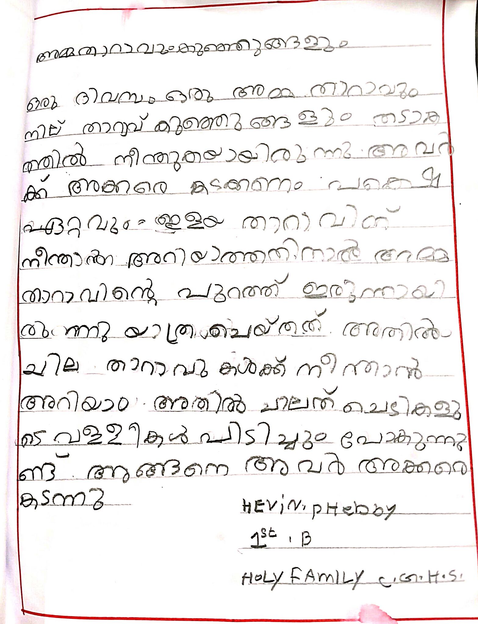 kunjezhuth of class 1 student