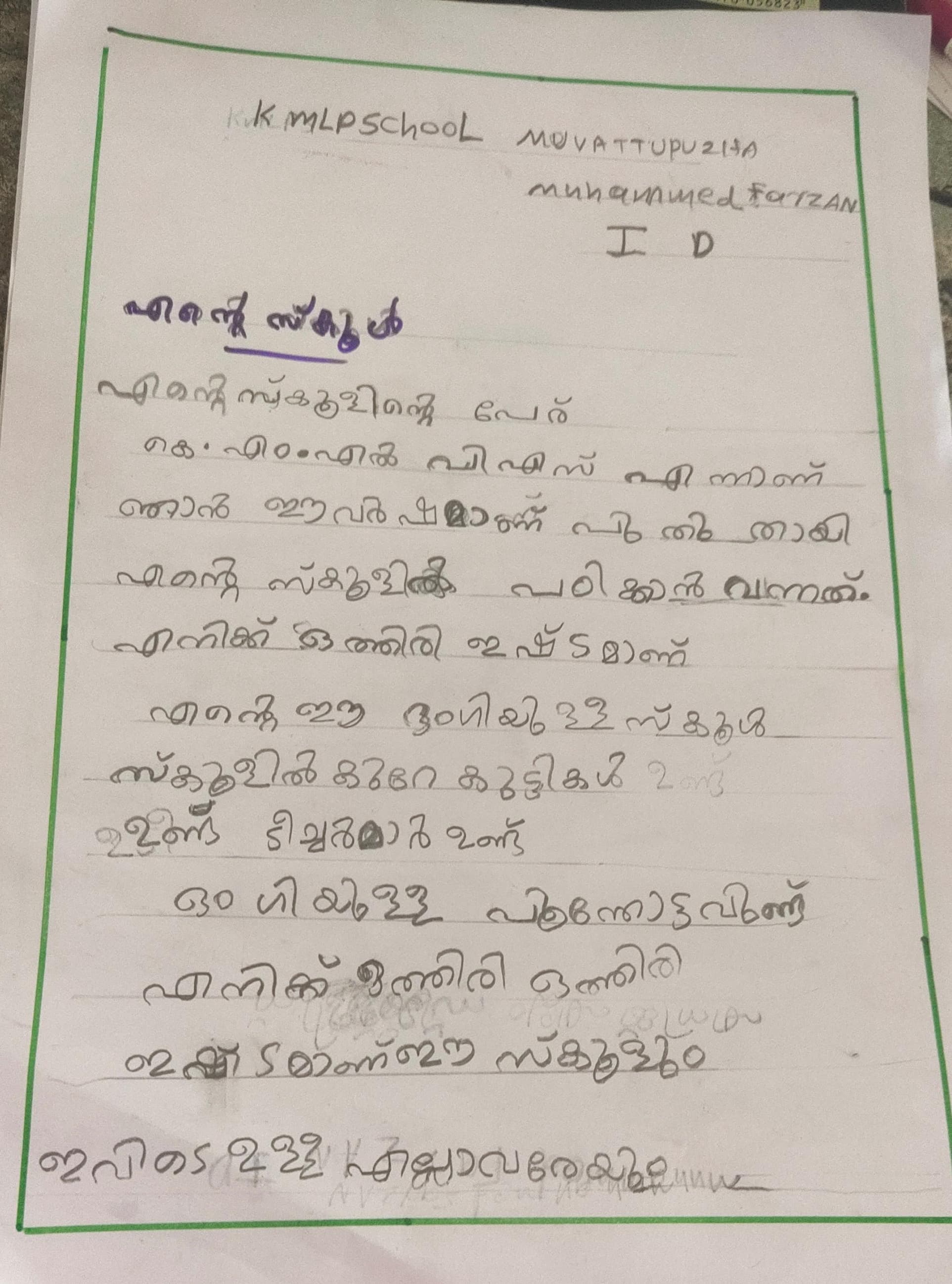 22:05, 18 മാർച്ച് 2024-നു ഉണ്ടായിരുന്ന രൂപം സൃഷ്ടിച്ചത്:- Rojesh John (സംവാദം | സംഭാവനകൾ) (Kunjezhuthukal of Standard 1 Student വർഗ്ഗം:ഒന്നാം ക്ലാസ്സുകാരുടെ രചനകൾ)