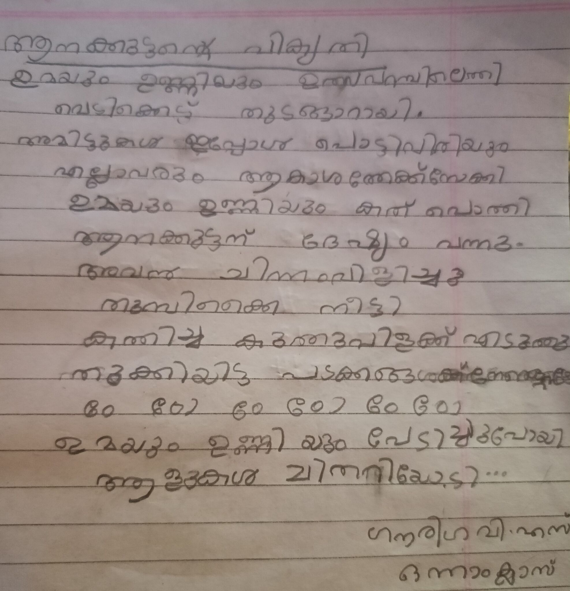 13:01, 20 മാർച്ച് 2024-നു ഉണ്ടായിരുന്ന രൂപം സൃഷ്ടിച്ചത്:- 37524 (സംവാദം | സംഭാവനകൾ) (kunjezhuth of class 1 student)