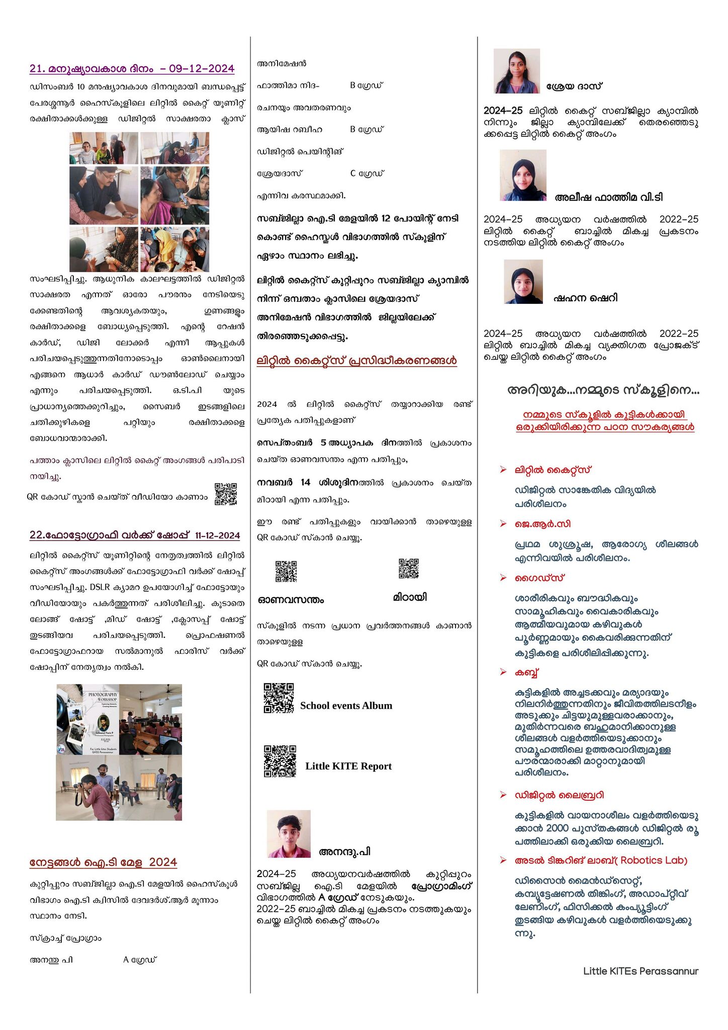 2024-25 അധ്യയന വർഷം ലിറ്റിൽ കൈറ്റ് ക്ലബ്ബ് നടത്തിയ മുഴുവൻ പരിപാടികളുടെയും ഡോക്യുമെൻ്റേഷനായ 'ഇൻഫിനിറ്റ് വിഷൻ - ഇ- പത്രം,