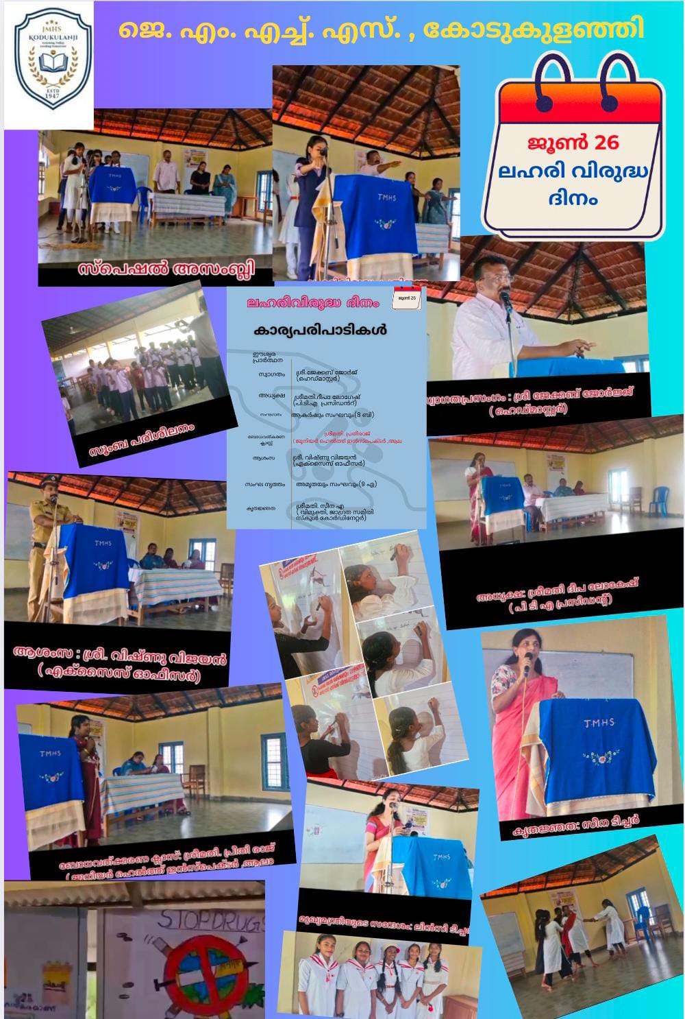 Jmhs Kodukulanji സ്കൂളിൽ ലഹരിവിരുദ്ധ ദിനം ആചരിച്ചു ബഹുമാനപ്പെട്ട ഹെഡ്മാസ്റ്റർ ശ്രീ ജേക്കബ് ജോർജ് സന്ദേശം നൽകി അതിനു