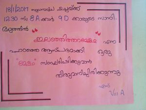 9-ാം ക്ലാസ്സിലെ കുട്ടികളില് ഗണിതം, ശാസ്ത്രം, മാതൃഭാഷ എന്നീ വിഷയങ്ങളില് പഠന പിന്നോക്കവസ്ഥ കണ്ടെത്തി 9-ാം ക്ലാസ്സിലെ പാഠ്യപദ്ധതി വിഭാവനം ചെയ്യുന്ന പഠന നേട്ടങ്ങള് ആര്ജിക്കാവുന്ന തലത്തിലേയ്ക്ക് മുഴുവന് കുട്ടികളേയും എത്തിക്കുക എന്നതാണ് ഇതിന്റെ ലക്ഷ്യം. ഇതിനെ പൂര്ത്തീകരിക്കുന്നതിനു വേണ്ടി എച്ച്.എം.ന്റെ അധ്യക്ഷതയില് യോഗം ചേരുകയും ക്ലാസ്സ് എടുക്കാന് തീരുമാനിക്കുകയും ചെയ്തു. 6/12/2016 മുതല് പഠന പിന്നോക്കവസ്ഥയിലുള്ള 21 കുട്ടികളെ കണ്ടെത്തി ക്ലാസ്സുകള് കൈകാര്യം ചെയ്തു വരുന്നു.