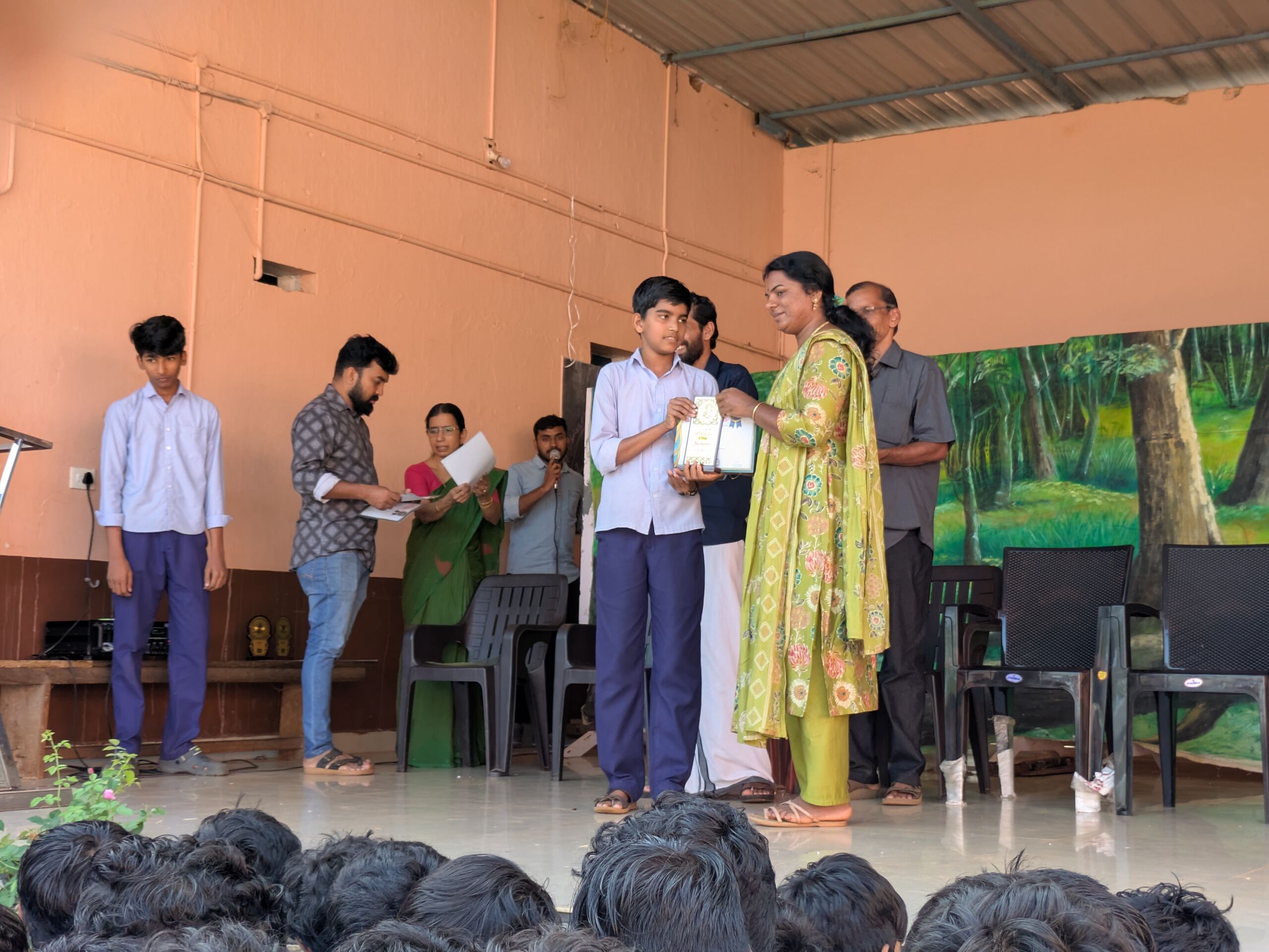 Student accepting certificate from Ward Member