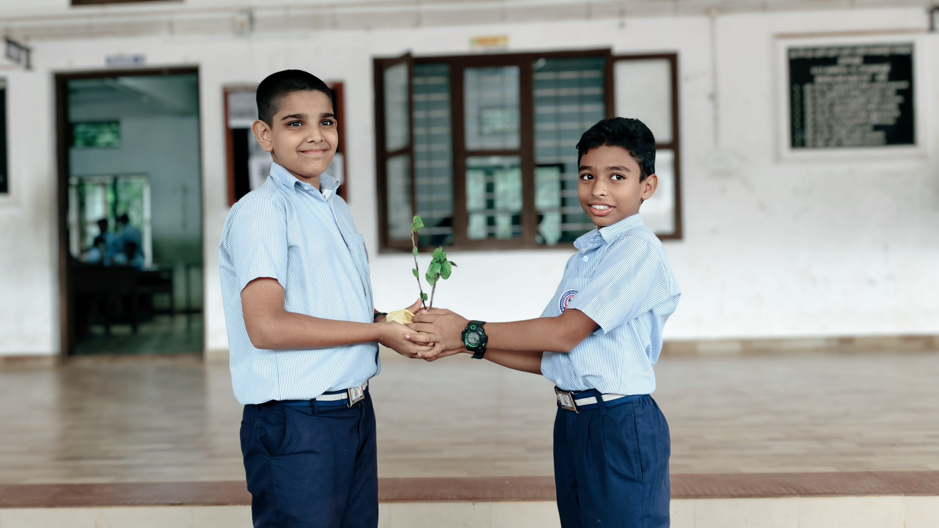 കുട്ടികൾ കൂട്ടുകാർക്ക് തൈ കൈമാറുന്നു